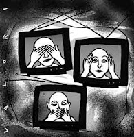 Da allora è sorto il problema, ogni qualvolta attraverso la stanza per andarmi a versare un bicchiere d'acqua, mi siedo a tavola per cenare o mi accomodo sul divano a leggere un libro, la TV mi guarda in cagnesco. Niente più occhiate ammiccanti, ma uno sguardo duro, severo, ammonitore. Come se fra il nero di quello schermo si annidassero stizziti e carichi di riprovevole sdegno, gli sguardi di Maria De Filippi, Santoro, Floris , Minzolini, Belen, Piero Angela, Fede e tutto il resto del bestiario deputato ad animare il tubo catodico ed i moderni schermi lcd.