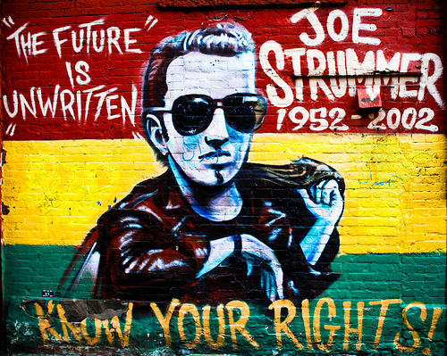 Così - come si può vedere nel bel film-documentario che gli ha dedicato Julian Temple e che si intitola Il futuro non è scritto - durante uno dei tour coi Mescaleros Joe Strummer, l'ex celeberrimo leader dei Clash se ne sta fuori dalla sala in cui si svolgerà lo show e si rivolge ai passanti. Dice cose come «Hey, stasera siamo qui a suonare». Come «Perché non venite a sentirci?». Non sembra affatto un imbonitore. E infatti non lo è. È un uomo che pensa che sarà un piacere per entrambi, ritrovarsi a fine giornata a condividere un po' di buona musica. È un uomo che ama il suo lavoro. Sta sulla soglia della sua bottega (di artigiano? di artista?) e spera che la gente non vada così di fretta da negarsi, e da negargli, la soddisfazione di scoprire quello di cui lui è capace, specie nei suoi momenti migliori.