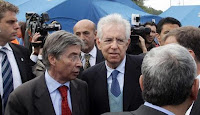 Monti il banchiere, troppo impegnato negli Usa a ricevere gli ordini del padrone, per interessarsi in qualche misura dell'attentato di Brindisi e del terremoto che ha devastato l'Emilia Romagna, solo stamattina ha trovato il tempo per recarsi nelle zone terremotate, a testimoniare la presenza di uno stato che ormai alligna solamente nelle cartelle di Equitalia e nei progetti di militarizzazione e repressione sul territorio.