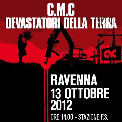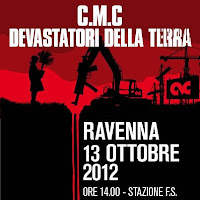 A Ravenna domani, questo gruppo di cittadini provenienti da un po' tutto il paese, cui va la mia stima e la mia totale solidarietà, sfilerà in corteo davanti alla CMC per ribadire il proprio NO alla devastazione che la multinazionale rossa sta portando in Italia e nel mondo. E lo farà nonostante l'omertà mediatica in cui è stata racchiusa questa manifestazione e nonostante i molti boicottaggi (palesi o striscianti) di cui sono stati oggetto perfino all'interno delle proprie realtà di lotta.