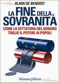 Che cos’è la mondializzazione? E’ un fenomeno ineluttabile oppure si tratta di qualcosa di reversibile? L’unificazione monetaria europea è stata vantaggiosa per i popoli del Vecchio Continente o al contrario li ha immiseriti? A questi quesiti tenta di dare una risposta Alain De Benoist nel suo ultimo libro La fine della sovranità. Come la dittatura del denaro toglie il potere ai popoli, Arianna Editrice, p. 128. In quest’opera che si pone come completamento del suo precedente volume Sull’orlo del Baratro il pensatore francese analizza le cause della depressione che sta colpendo l’economia europea le quali vanno ricercate in una crisi generale del capitalismo globalizzato affermatosi in tutto il mondo a partire dalla caduta del muro di Berlino e la fine degli ultimi stati socialisti. Quella che sta affrontando l’Europa spiega De Benoist non è una semplice recessione economica ma una vera e propria perdita della sua sovranità. In passato infatti il potere dei singoli stati nazione poggiava su alcuni principi fondamentali: la sovranità economica, quella militare ed infine quella culturale. La prima è stata eliminata attraverso la liberalizzazione dei mercati finanziari che ha reso impossibile alle autorità politiche di influire sulle decisioni di natura economica. Se esse prendessero misure controcorrente come la nazionalizzazione del sistema creditizio e delle leve fondamentali dell’economia indurrebbero gli investitori stranieri a portare i propri capitali altrove provocando il collasso economico del paese.