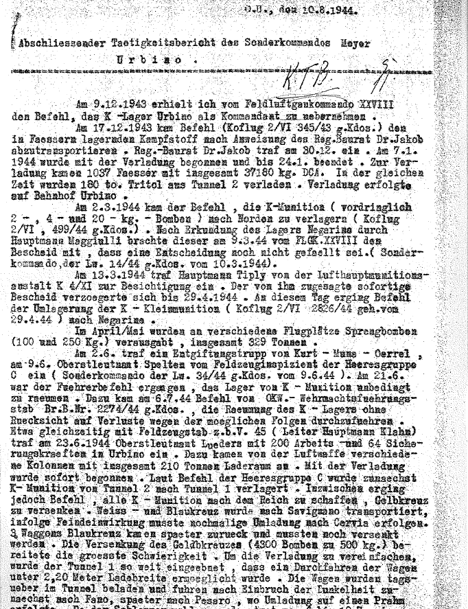 Ecco il documento inequivocabile rintracciato dal professor Alessandro Lelli nell'archivio della Luftwaffe (aviazione militare tedesca) che attesta l'affondamento da parte dei soldati germanici, in un'area compresa tra Pesaro e Vallugola, entro le 3-4 miglia dalla costa, di ben 1316 tonnellate di bombe all'iprite ed 84 tonnelate di bombe all'arsenico. Ovviamente, le autorità italiane sanno tutto da un pezzo, ma fanno finta di niente, a scapito dei sudditi, silenti ed ossequienti.
