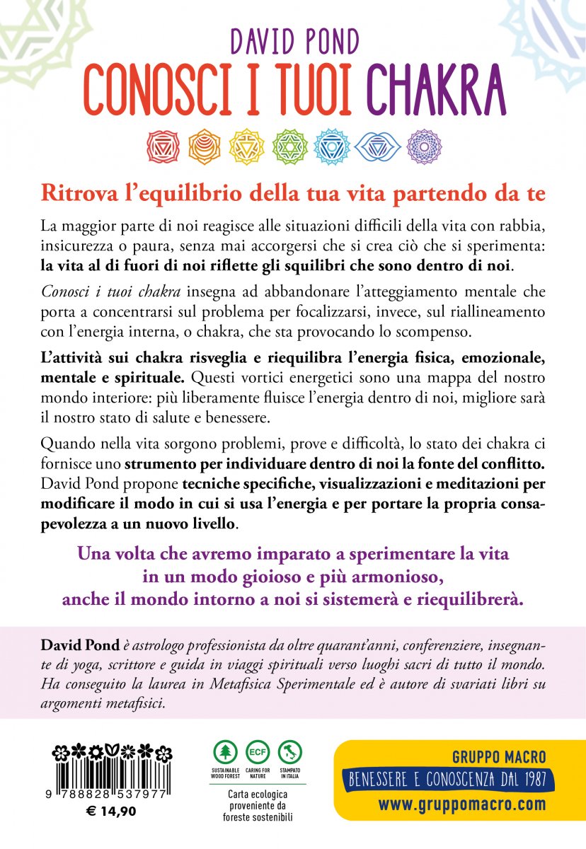 Quando nella vita sorgono problemi, prove e difficoltà, lo stato dei chakra ci fornisce uno strumento per individuare dentro di noi la fonte del conflitto. David Pond propone tecniche specifiche, visualizzazioni e meditazioni per modificare il modo in cui si usa l’energia e per portare la propria consapevolezza a un nuovo livello.