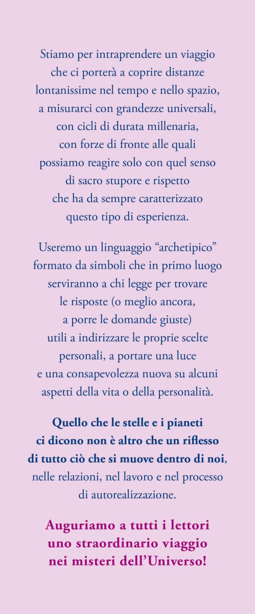 Stiamo per intraprendere un viaggio che ci porterà a coprire distanze lontanissime nel tempo e nello spazio, a misurarci con grandezze universali, con cicli di durata millenaria, con forze di fronte alle quali possiamo reagire solo con quel senso di sacro stupore e rispetto che ha da sempre caratterizzato questo tipo di esperienza.
