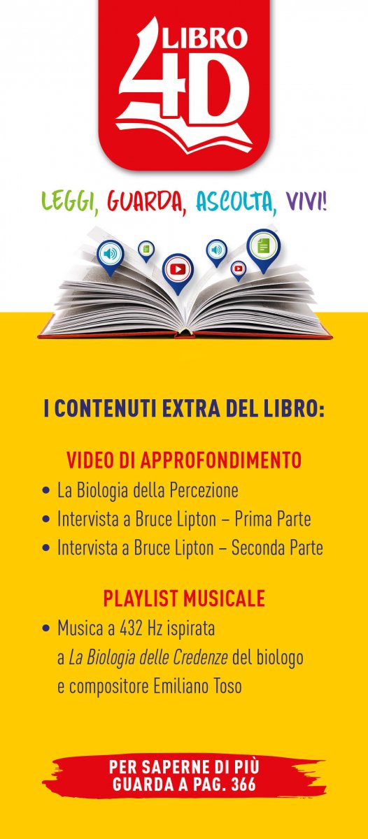 La Biologia delle Credenze è un libro in 4D: è un libro che va oltre la carta. Contiene una serie di contenuti multimediali extra che aiutano a immergersi nella realtà del libro, approfondire la conoscenza, per vivere appieno i contenuti Macro.