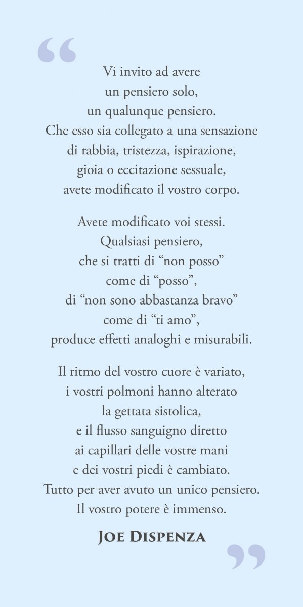 "Vi invito ad avere un pensiero solo, un qualunque pensiero. Che esso sia collegato a una sensazione di rabbia, tristezza, ispirazione, gioia o eccitazione sessuale, avete modificato il vostro corpo.