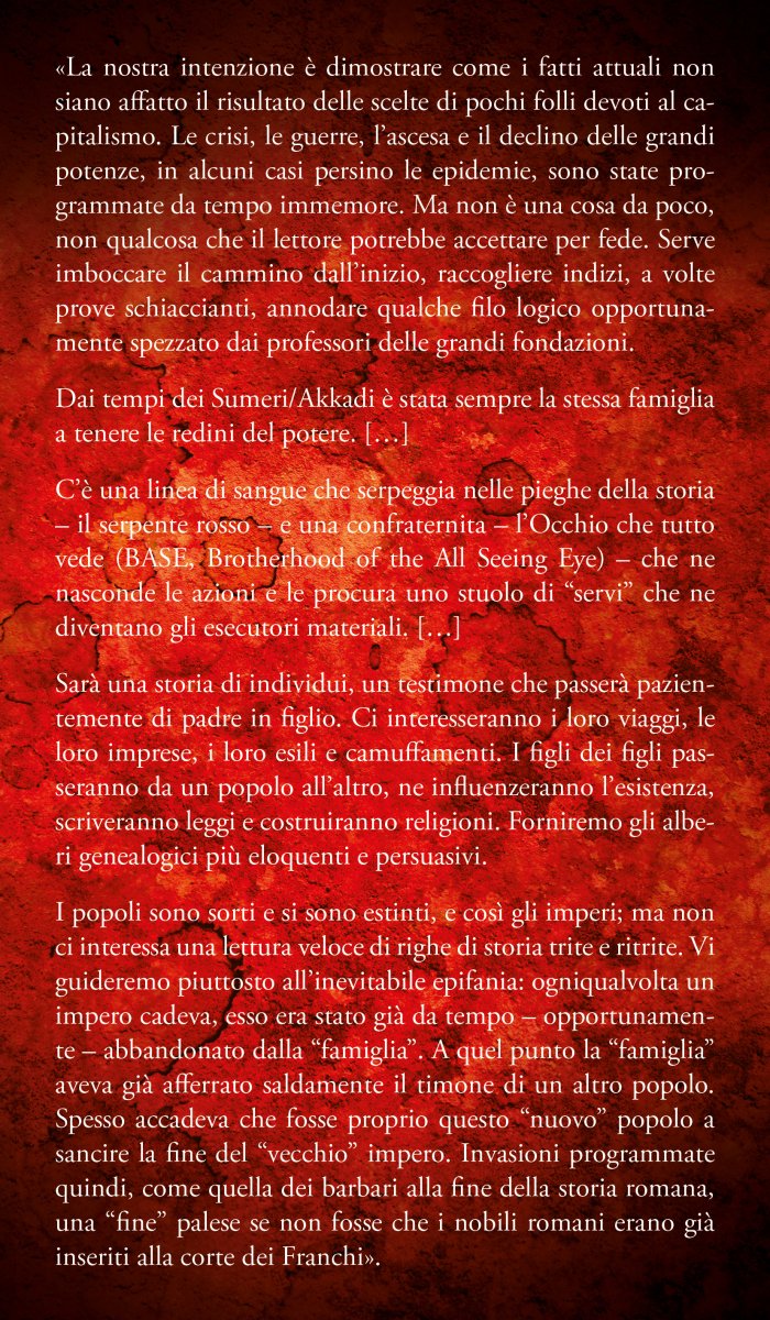 Lo stesso sangue si manifesta al vertice dei grandi imperi del passato e dei maggiori bacini di cultura (Egitto, Israele, Grecia), accompagnato e protetto da un circolo di “saggi” che assomiglia alla moderna massoneria e che ne è il precursore.