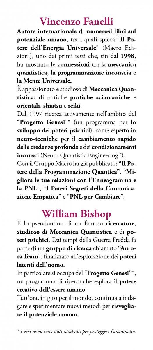 Se desideri raggiungere questi importanti obiettivi, questo è il libro giusto: grazie alle tecniche di Neuro Quantistic Engineering™ imparerai a rimodellare il tuo programma mentale.